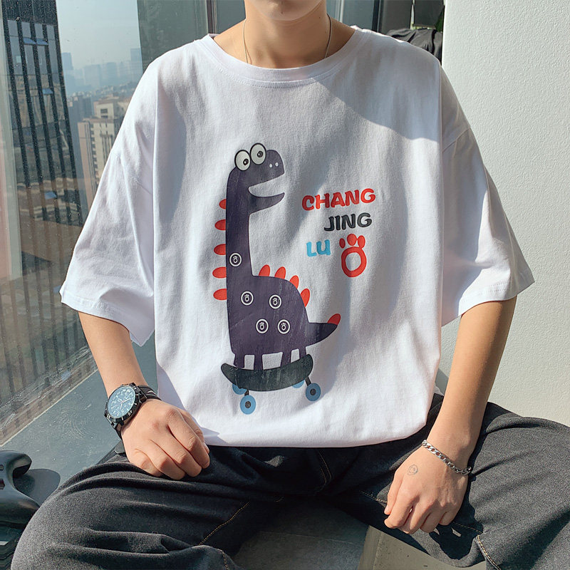 短袖男夏季日系卡通恐龍印花上衣半袖